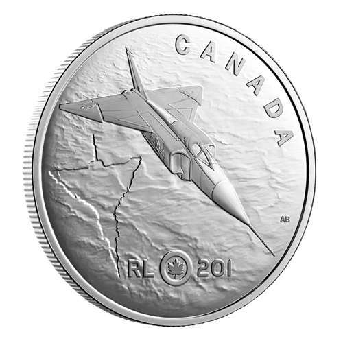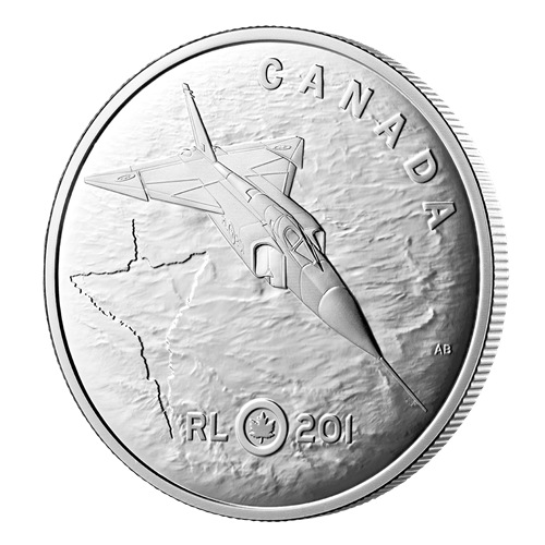 The first Arrow, RL-201, is featured on this 1 oz. fine silver coin, where the spirit of innovation that produced the storied aircraft is reflected in the waters of Lake Ontario—the very waters over which different scaled models were launched during the development phase between 1954 and 1957.