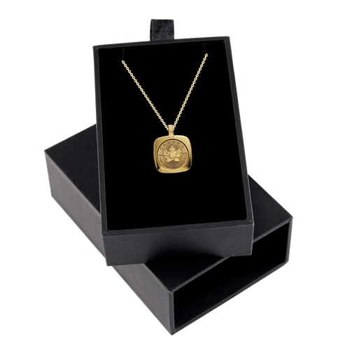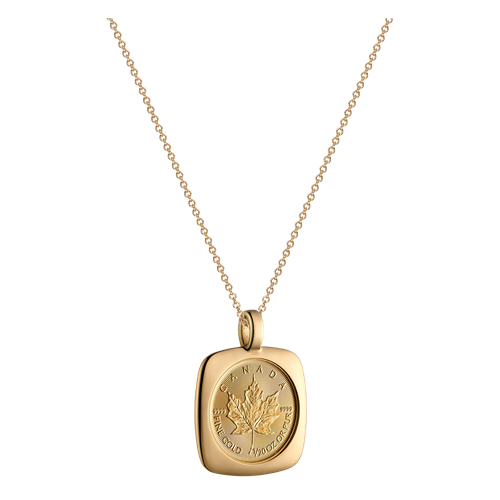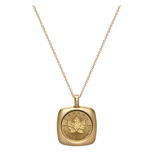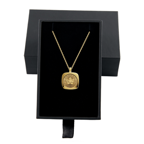Celebrate the best of Canada’s proud craftsmanship tradition with a 24K Gold Maple Leaf (GML) in an 18K gold pendant (with chain), which transforms a world-renowned trusted investment piece into wearable jewellery.