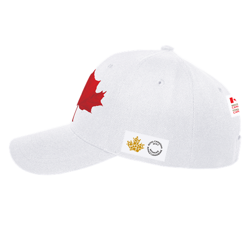 The front embroidery features a beautiful Canadian maple leaf and the side and back feature woven labels, one on the side with the Royal Canadian Mint logo and the back with a Minted in Canada designation.