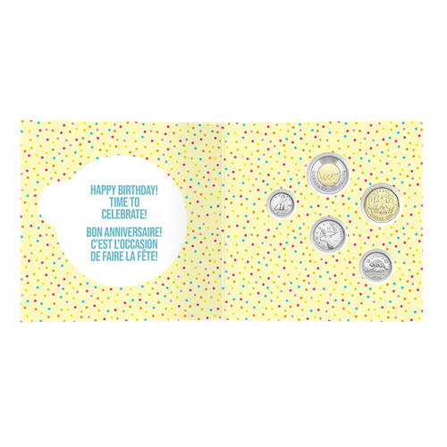 Send cheerful birthday vibes to your friends and loved ones with the 2026 Birthday Gift Card Set! The Canada goose replaces the loon on this set’s $1 coin, which features a whimsical design that puts a fun, Canadian spin on a classic birthday scene. The special-themed $1 coin is unique to this set, and all five circulation coins are tucked inside the greeting card, ready to be viewed and cherished by the recipient as a sweet reminder of good times and happy memories.