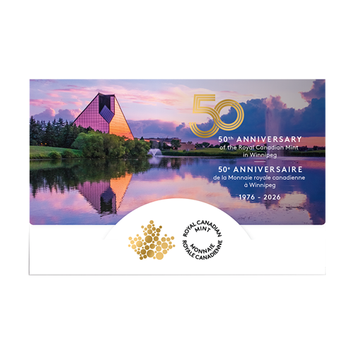 All six coins come sealed and packaged in a folder featuring visuals that represent the 50th anniversary of the Royal Canadian Mint’s Winnipeg facility. A certificate of authenticity and detailed coin specifications are incorporated into the folder and presented in an easy-to-read format.