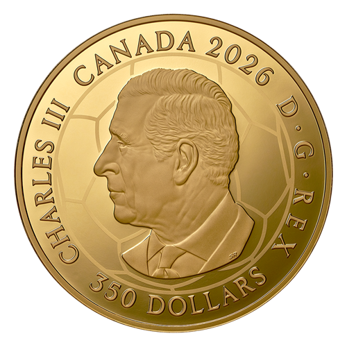 The reverse design by Canadian artist Glen Green features the official FIFA World CupTM/MC Trophy flanked by silhouettes of cheering fans overlaid with a stylized maple leaf, reflecting Canada’s official FIFA World Cup 2026TM/MC host country emblem. The official emblem is twice featured on the outer ring that frames the celebratory image, while the official event designation in English and French appears at the top and bottom, respectively. The obverse features a football (soccer ball) pattern behind the effigy of His Majesty King Charles III by Canadian artist Steven Rosati.