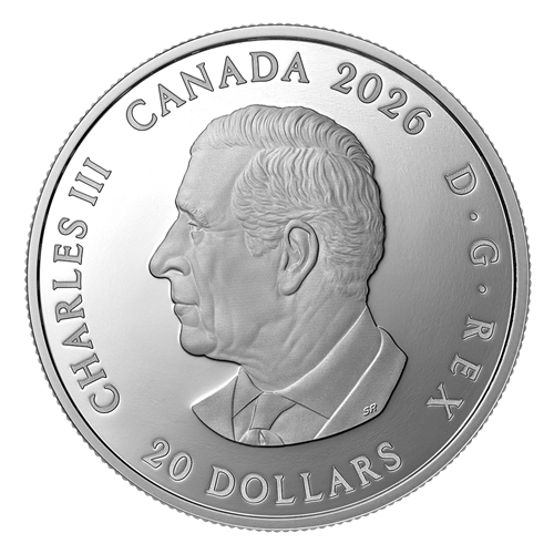 Designed by Canadian artist Glen Green, your coin’s reverse features the official FIFA World Cup 2026TM/MC emblem at the centre, with the FIFA World CupTM/MC Trophy placed within the vertically stacked hosting year (“26”). The bold “2” and “6” shapes from the official emblem scatter across the background, their vibrant colours creating a dynamic, celebratory backdrop. The official event designation in English and French is located at the top and bottom of the coin, respectively. The obverse features the effigy of His Majesty King Charles III by Canadian artist Steven Rosati.