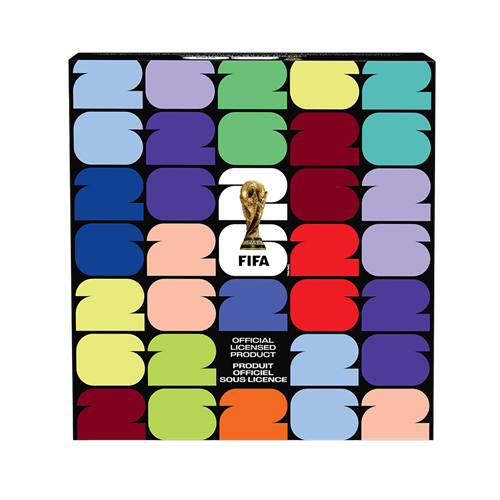 Graphic paperboard box with official FIFA authenticity sticker