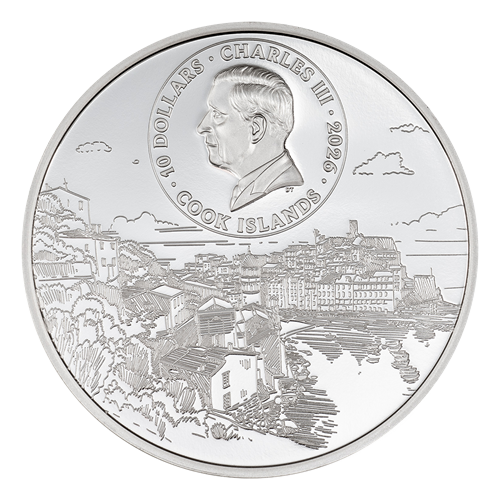 The third coin in the Architectures of the World series brings some of the world’s most celebrated landmarks to your fingertips. This 2 oz. fine silver coin invites you to explore the breathtaking Cinque Terre on Italy’s Ligurian coast. The coin’s reverse showcases an iconic view of the region—the colourful village of Manarola, one of the five lands in Liguria perched dramatically on rugged cliffs, overlooking the deep blue waters of the Mediterranean.