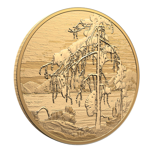 In shimmering 99.99% pure gold, The Jack Pine glows like a memory of sunset. While colour is central to Thomson’s legacy, this kilo-sized coin’s monochromatic format draws attention to the artist’s dynamic composition, shapes, even his expressive brushwork. The absence of colour doesn’t diminish the impact: it deepens it, shifting the emphasis from the hues of Canada to the enduring shape of its natural spirit.
