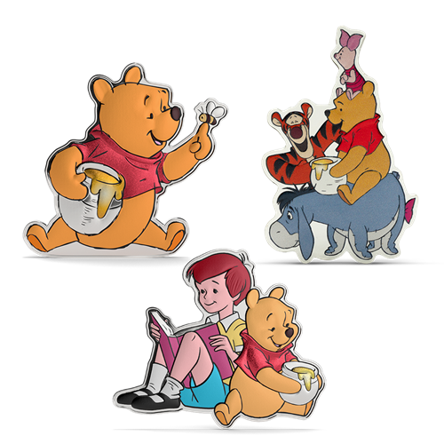 - Issued by Niue and crafted in 1 oz. of .999 fine (99.9% pure) silver. A three-part series celebrating 100 years of Winnie The Pooh.