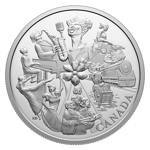 - En mémoire de la communauté de Hogan’s Alley. Frappée dans 1 oz d’argent pur à 99,99 %, cette pièce fait revivre l’histoire de Hogan’s Alley, quartier de la première communauté noire de Vancouver, qui a brillé par sa vie culturelle bouillonnante jusqu’à sa démolition, dans les années 1960.