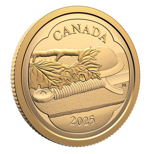 Cette pièce en or pur à 99,99 % accompagne le dollar épreuve numismatique en argent fin 2025. Le motif de son revers rend hommage à la Tombe du Soldat inconnu. Bordée par un cordon évoquant la forme d’un coquelicot, le plan rapproché est familier à Mary-Ann Liu, l’artiste ayant créé le motif, car c’est elle qui a créé la sculpture qui orne la Tombe. En 2025, 25 ans plus tard, elle honore de nouveau la mémoire du Soldat inconnu, ce soldat qui, même dans la mort, sert son pays par sa représentation silencieuse de tous les soldats canadiens et toutes les soldates canadiennes ayant péri à la guerre.